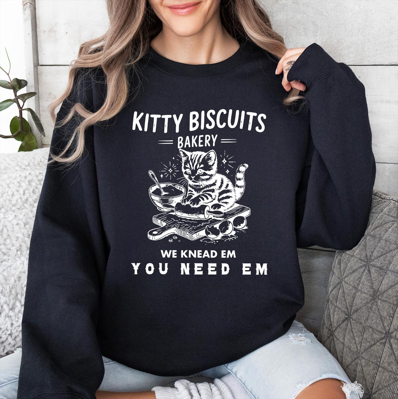 This cozy sweatshirt is perfect for those who love cats and baking. It’s a fun way to express your affection for felines.