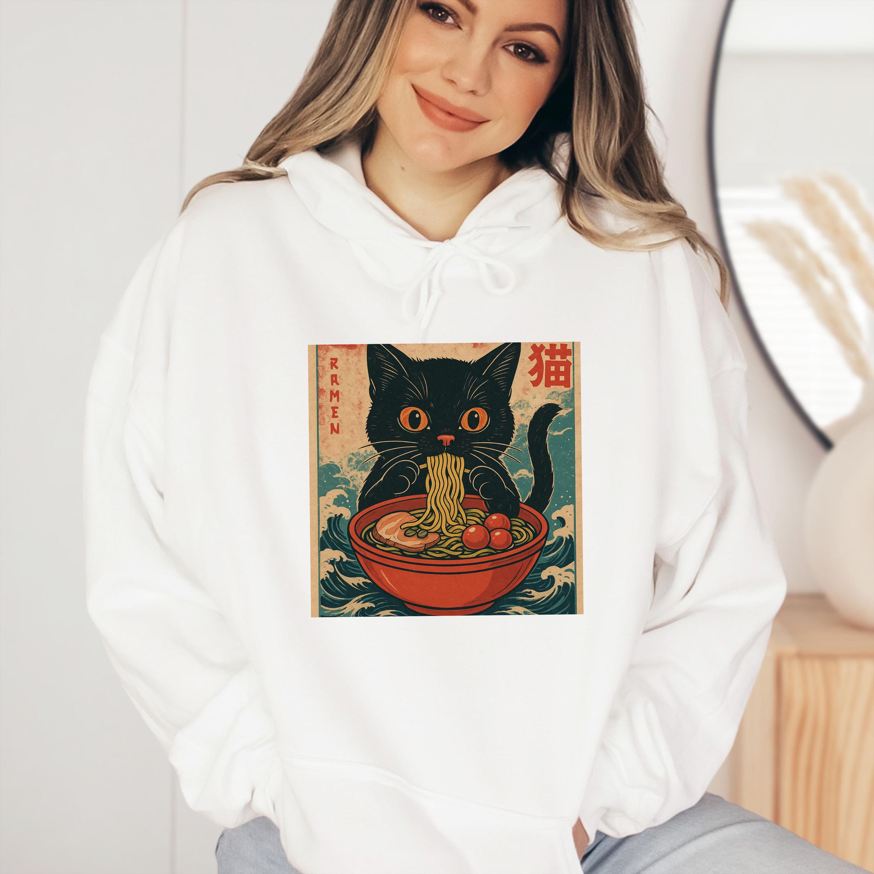 Noodle Cat Hoodie, Cat Hoodie, Ramen Cat Hoodie, Cat Mom Hoodie, Funny Cat Anime Style, Japanese Streetwear, Animal Lover Hoodie, Cat Mom Gift
